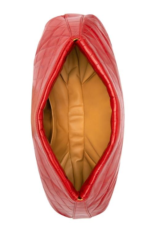 Croc-effect full grain leather is folded and molded creating a sensual and powerful presence.