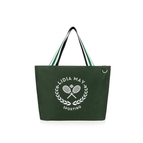 Chic and spacious with sporty vibes, perfect for work and travel. Top Zipper ensures secure transport. Crafted with premium cotton canvas. Waterproof lining and interior zip pocket. 14'’ x 18'’ x 9'’