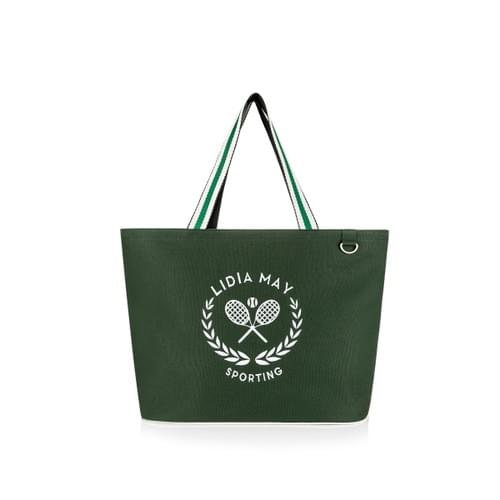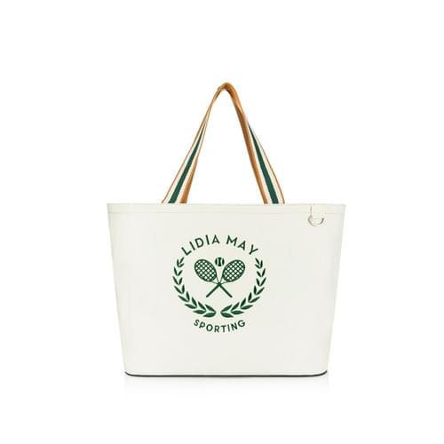 Stylish tote for the tennis lifestyle. Crafted with premium cotton canvas. Unisex. Zipper racquet pocket and main section for secure transport. Waterproof lining and interior zip pocket. 15 x 18 x 9